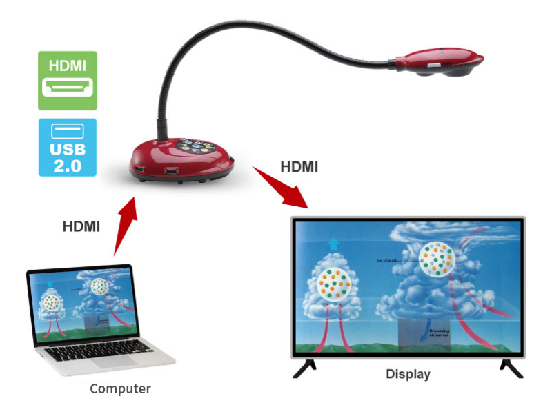 DC172 baut auf dem reinen USB-DC136 auf und verfügt über einen HDMI-Ausgang für den direkten Anschluss an Displays und Projektoren. Die Auto-Tune-Taste optimiert die Kamera automatisch, um scharfe, farbausgewogene und helle Bilder zu erzeugen, die auf 4K-Monitoren, Projektoren und großformatigen Displays gut aussehen. Ein einzigartiges Merkmal ist der HDMI-Pass-Through: Der Bediener kann zwischen der Kameraausgabe eines Bildes von einem DVD-Player, PC oder Tablet wechseln.
