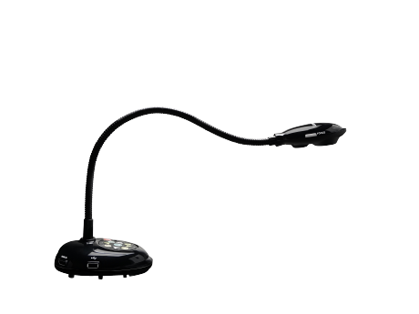 Die 4K-Kamera ist auf einem flexiblen Schwanenhals-Design mit mehreren Winkeln montiert. Die Höhe ist für Nah- oder Weitwinkelaufnahmen einstellbar. Das Objektiv kann große Dokumente und Objekte über A3 (16,5" x 12,4") erfassen, was der DC172 die Vielseitigkeit für den Einsatz an jedem Ort und für eine Vielzahl von Anwendungen verleiht.