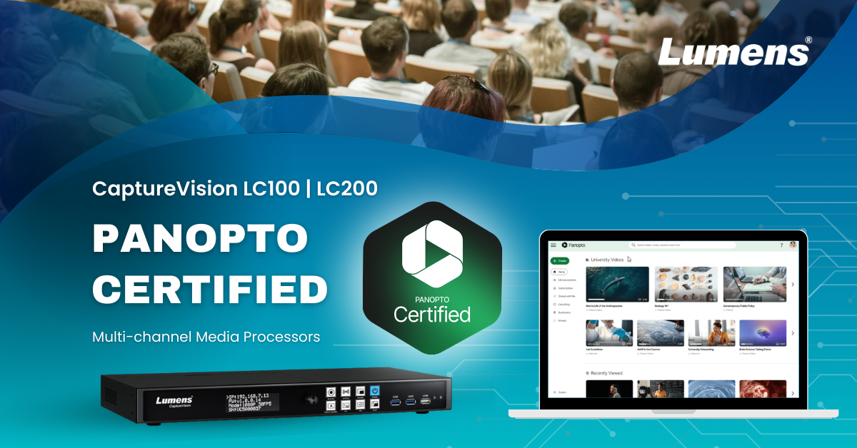 Lumens Digital Optics Inc. has announced that its LC100 and LC200 media processors have been certified for use with the Panopto video content management platform. Part of Lumens’ CaptureVision series, both models integrate seamlessly with Panopto for advanced learning management and content management.