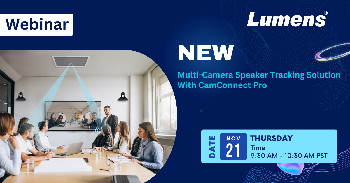 In this webinar, you will learn about Lumens CamConnect Pro AI-Box1 Processor. The CamConnect Pro is an advanced product in assisting both cameras and audio mics in meeting rooms. The AI-Box1 matches directional audio data with preset camera positions to focus on the active speaker.