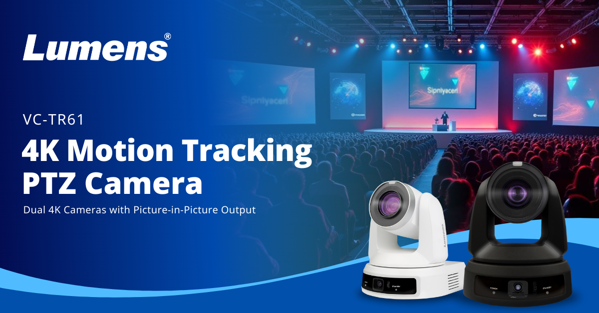 Lumens Digital Optics Inc. announces the launch of a new long-range 4K motion-tracking PTZ camera, the VC-TR61. Its 30x zoom and secondary tracking camera are optimized to deliver accurate, smooth and reliable tracking over distances of up-to 18 metres, compared with a maximum 10m range on standard models.