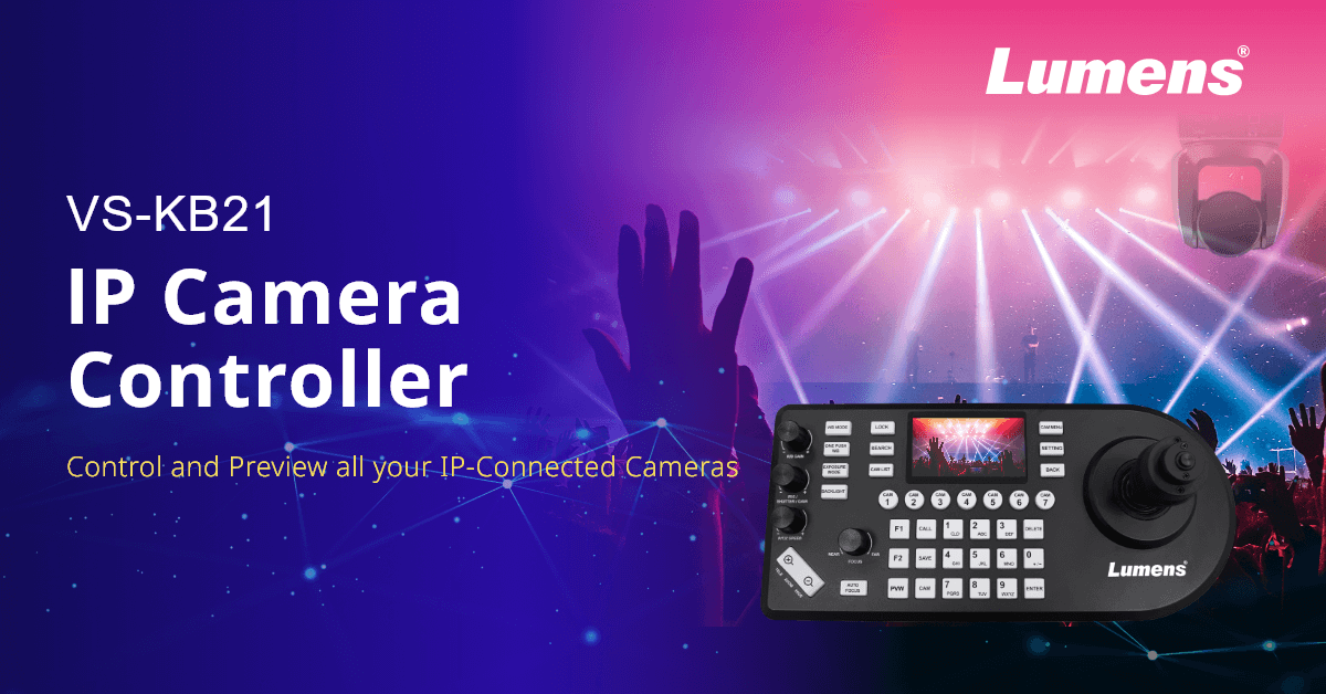 Lumens® Digital Optics Inc. is launching the VS-KB21N controller for NDI HX remote cameras live video preview. The built-in 3" LCD monitor gives the operator real-time video display for each camera, making device control more intuitive and more accurate.
