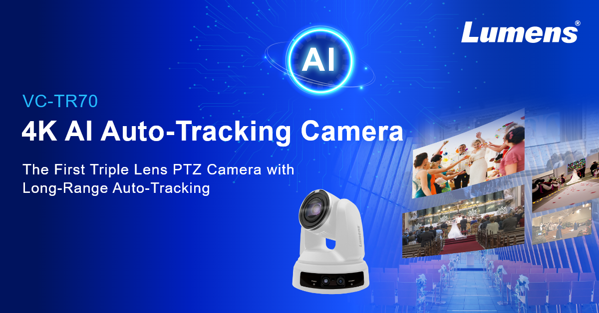 Lumens® Digital Optics Inc will announce the triple lens VC-TR70 PTZ camera which is the first to support flexible auto-tracking of subjects at any distance between 2 and 30 meters at this year's ISE in Barcelona. This makes the model well suited for use in all kinds of space, especially larger venues where the camera is installed at a distance from the podium or presentation area.