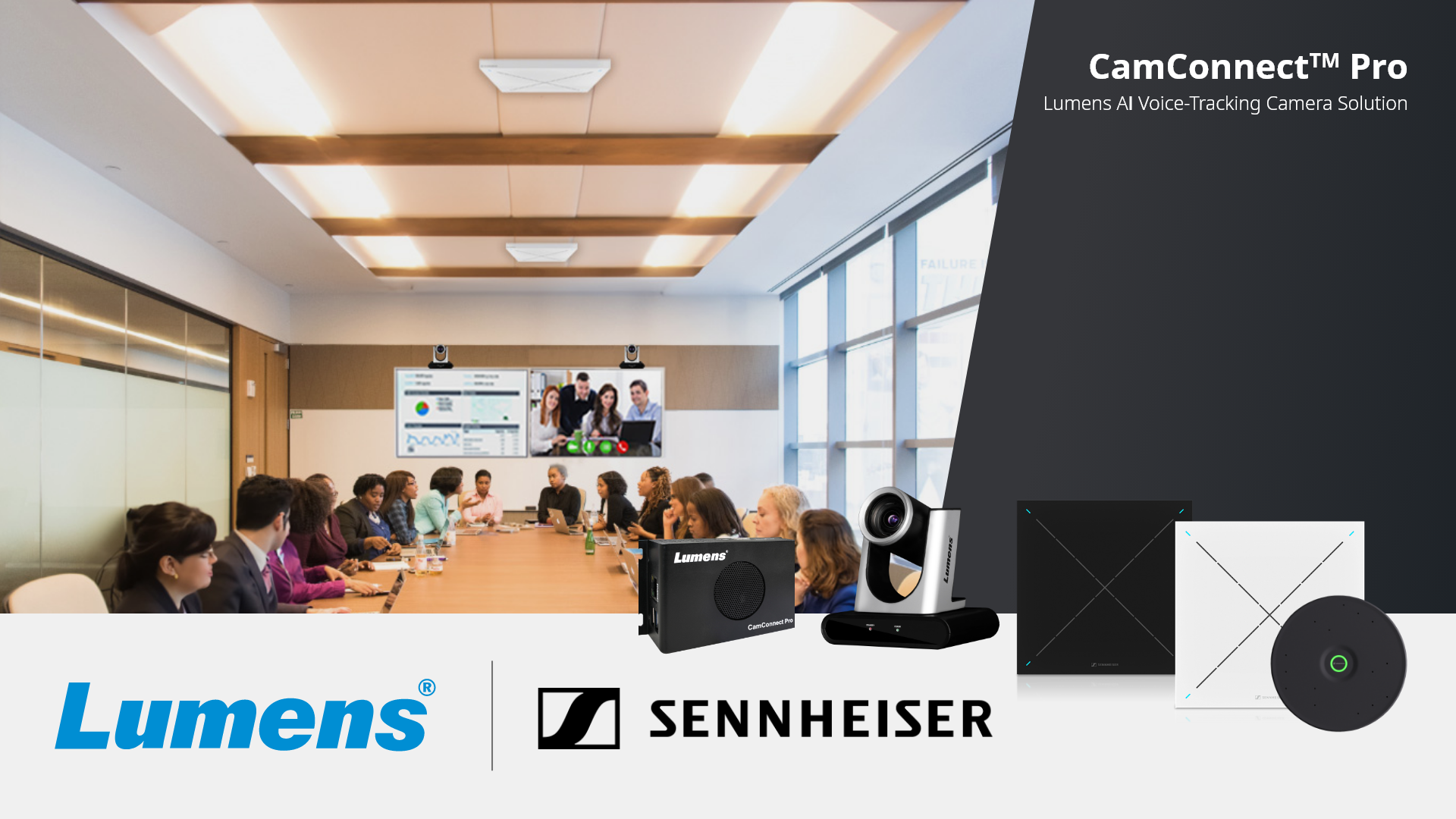 Lumens has teamed up with Sennheiser to integrate our CamConnect Pro voice-tracking camera system with their TeamConnect Ceiling Medium (TCCM) Microphone for revolutionizing hybrid meetings.