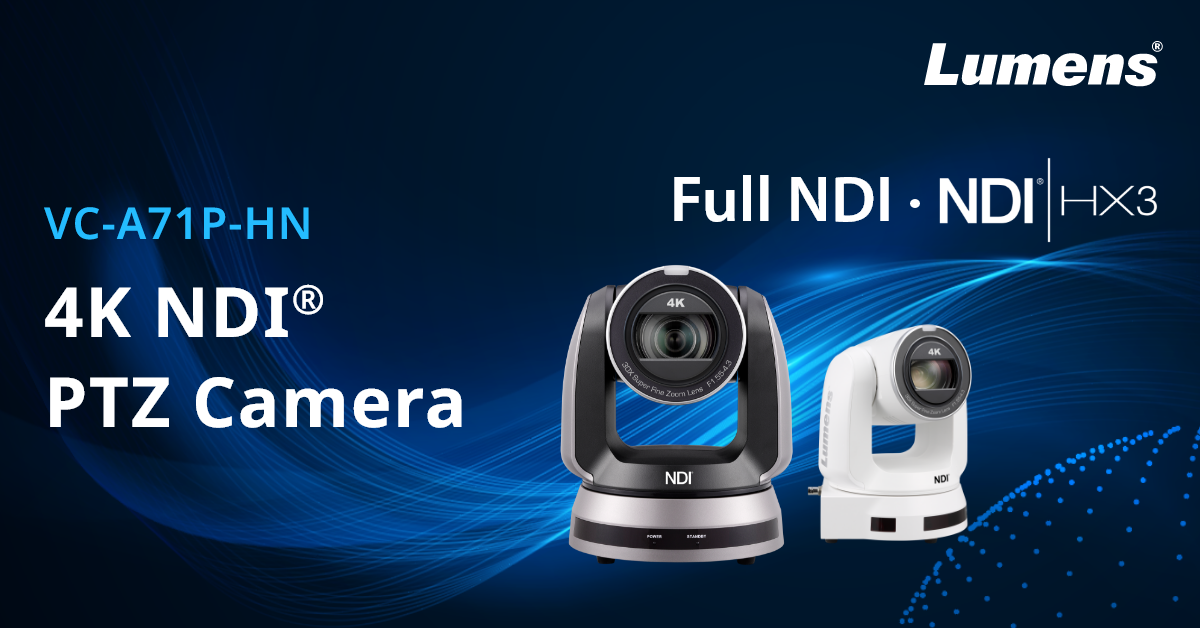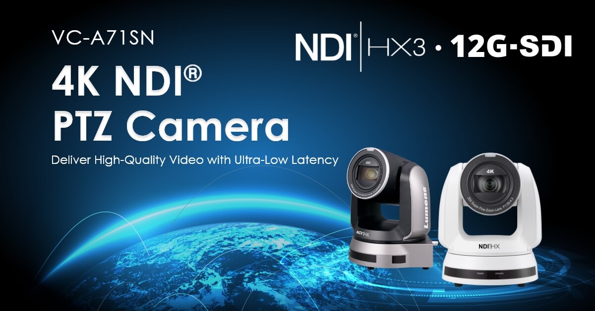 Lumens® Digital Optics Inc., today announced the NDI|HX3-capable VC-A71SN PTZ camera which transmits 4K video at up-to 60 fps.