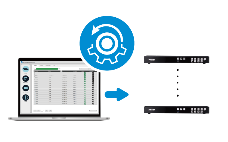 Lumens' Media Processors offer a myriad of control options, including simple button control, operation with a dedicated remote panel, support for third-party controllers, and integration with popular AV control systems. The Lumens Deployment Tool application provides users an easy way to control, manage, and maintain multiple media processors over the network. With the Deployment Tool and platforms such as Panopto, users can remotely set recording and streaming schedules for individual units.
