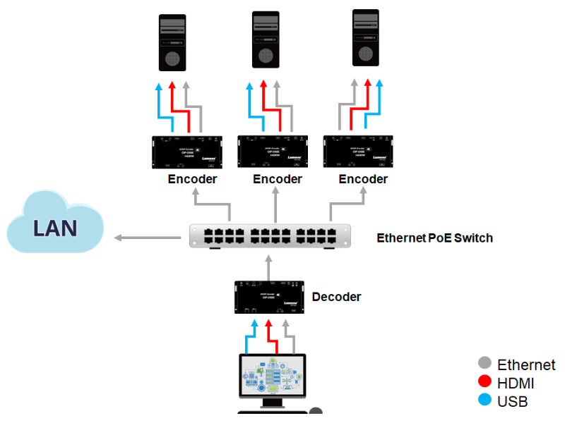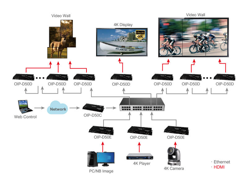 The OIP-D50E / OIP-D50D pair connects a 4K video source and large format displays over standard IP networks. A single encoder can also transmit videos over long distances to multiple decoders*, without the need for a dedicated AV network. With multiple encoders and decoders on the network, the Lumens technology goes up another gear: users can now simply drag any input to any output. Now, retailers, bar managers, and venues can play any video content on selected displays or on all monitors on the network. Where installations are running a variety of HD and 4K monitors, Lumens OIP can upscale and downscale the output to ensure compatibility with each display.