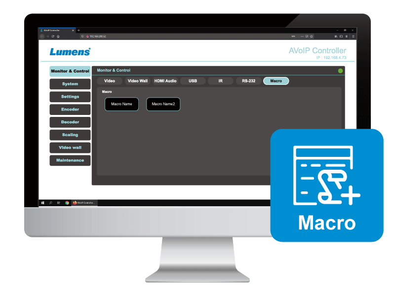 Designed to give your audience the ultimate visual experience, user-defined layouts can be applied with a single click. Customers can recall templates for video walls and groups of displays to automate facility-wide digital signage. Whether you want to transmit a single video source to every monitor and video wall, or use groups of displays for specific sources, this macro facility gives you the control you need.