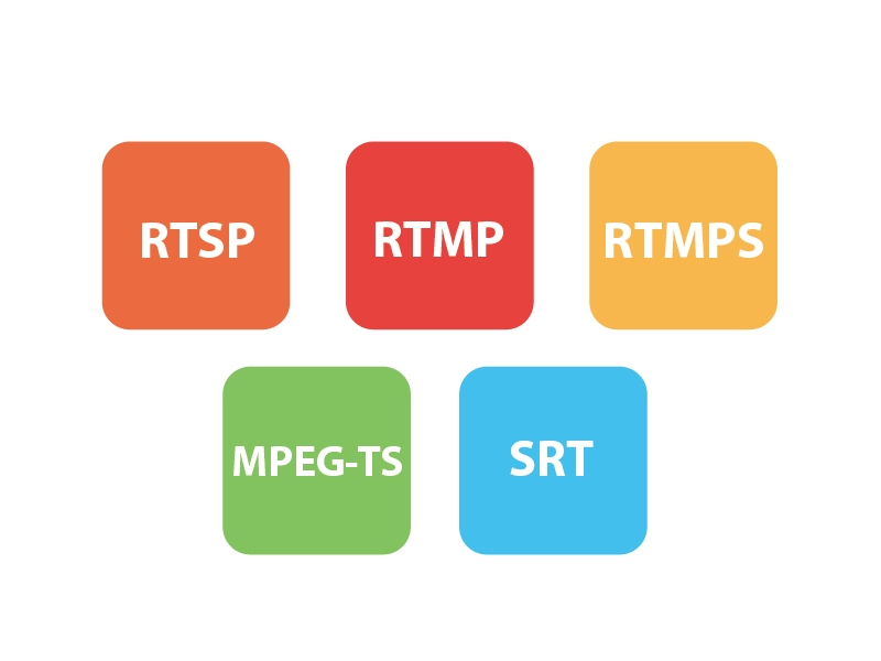 RTSP / RTMP / RTMPS / MPEG-TS / SRT