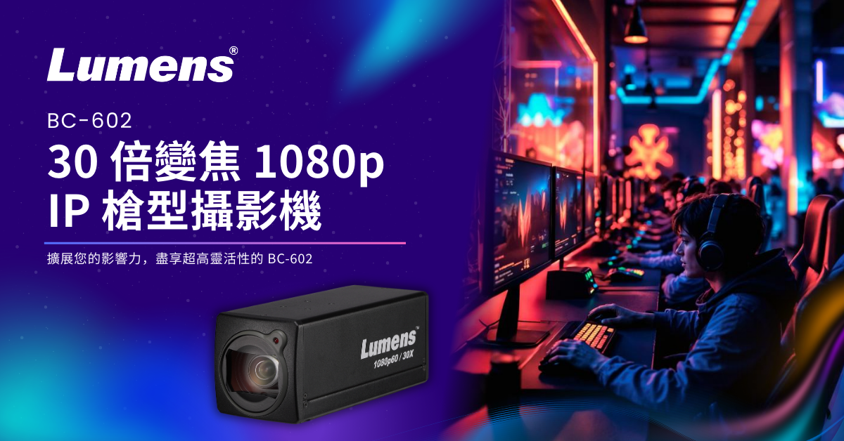 Lumens® 捷揚光電推出全新 Box Camera BC-602,配備強大的 30 倍變焦鏡頭。該產品搭載高靈敏度 HD 感測器,可錄製 1080p 影像,最高達 60fps,並具備全新整合式變焦功能,可實現極為精確的構圖。