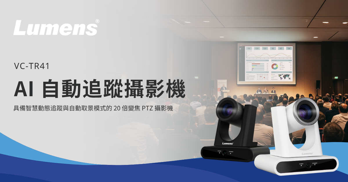 Lumens® 捷揚光電宣布推出全新 VC-TR41 PTZ 攝影機,具備進階的自動化影像製作功能。VC-TR41 延續獲獎產品 VC-TR40 的優異表現,VC-TR40 為新一代 AI 攝影機的先驅之一,能精準辨識人物並流暢地進行動作追蹤。