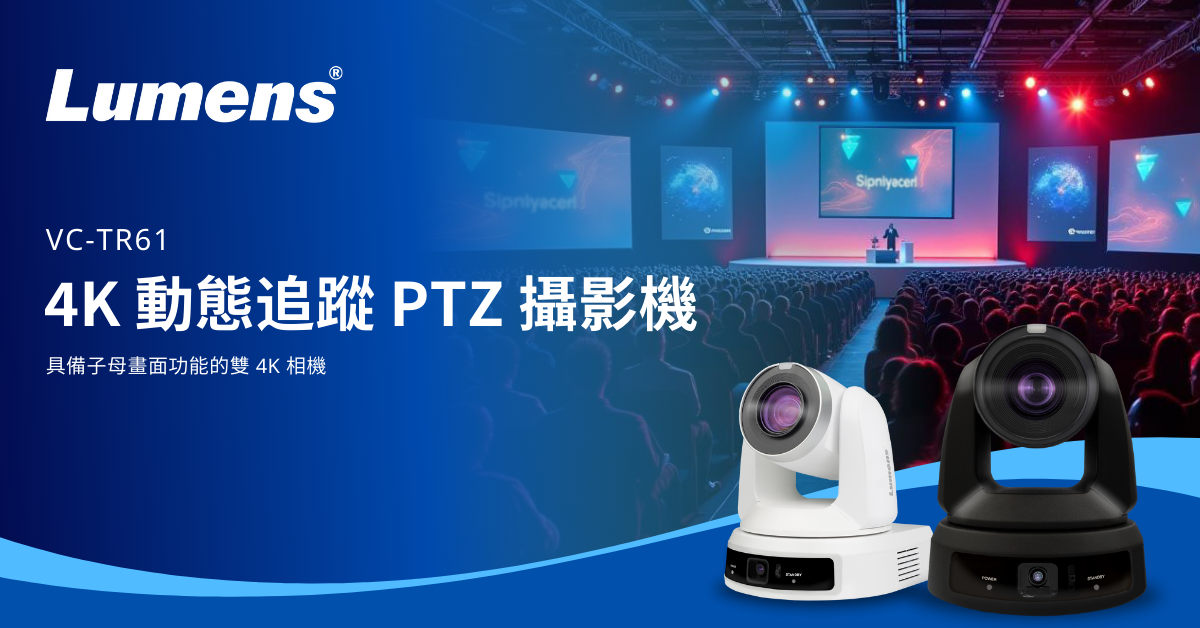 Lumens 捷揚光電宣布推出新款長距離 4K 自動追蹤 PTZ 攝影機 VC-TR61。該攝影機配備 30 倍變焦鏡頭及輔助追蹤攝影機,可實現最遠 18 公尺的精準、流暢且穩定的追蹤效果,相較於標準機型 10 公尺的追蹤範圍,大幅提升了使用距離和性能。