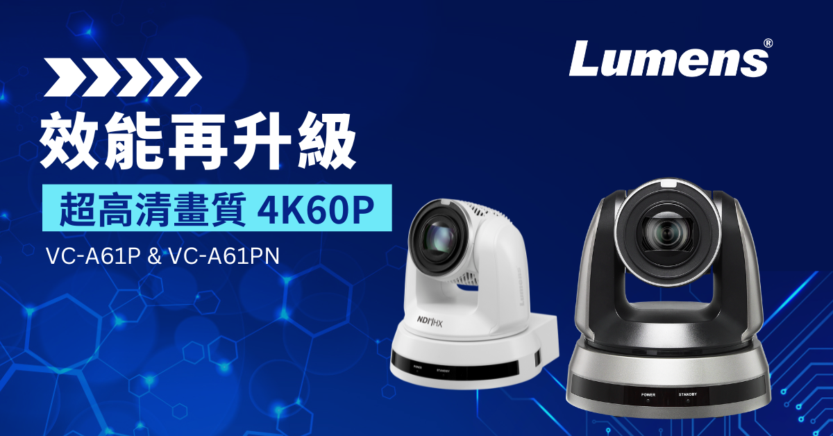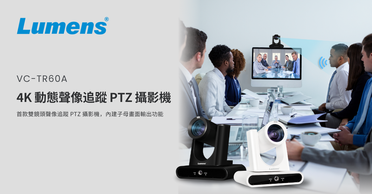Lumens® 捷揚光電宣布新 PTZ 攝影機型 VC-TR60A 全面上市。此款機型具備的功能引領業界創新技術,尤其它整合了聲音追蹤能力,並可利用內建子母畫面功能進行生產合成,完美使用雙畫面。VC-TR60A 的問世,代表著機器人型攝影機將成為未來趨勢。