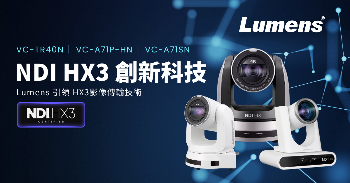 Lumens® 捷揚光電宣佈旗下三款 PTZ 攝影機, VC-TR40N、VC-A71P-HN 和 VC-A71SN 獲 NDI 官方認證,將可支援 NDI HX3 傳輸協議。此次的認證擴大了 Lumens 捷揚光電 PTZ 攝影機的兼容性,意味著使用者將可以與 NDI 最新製作系統無縫對接,讓影音傳輸更為可靠、穩定。