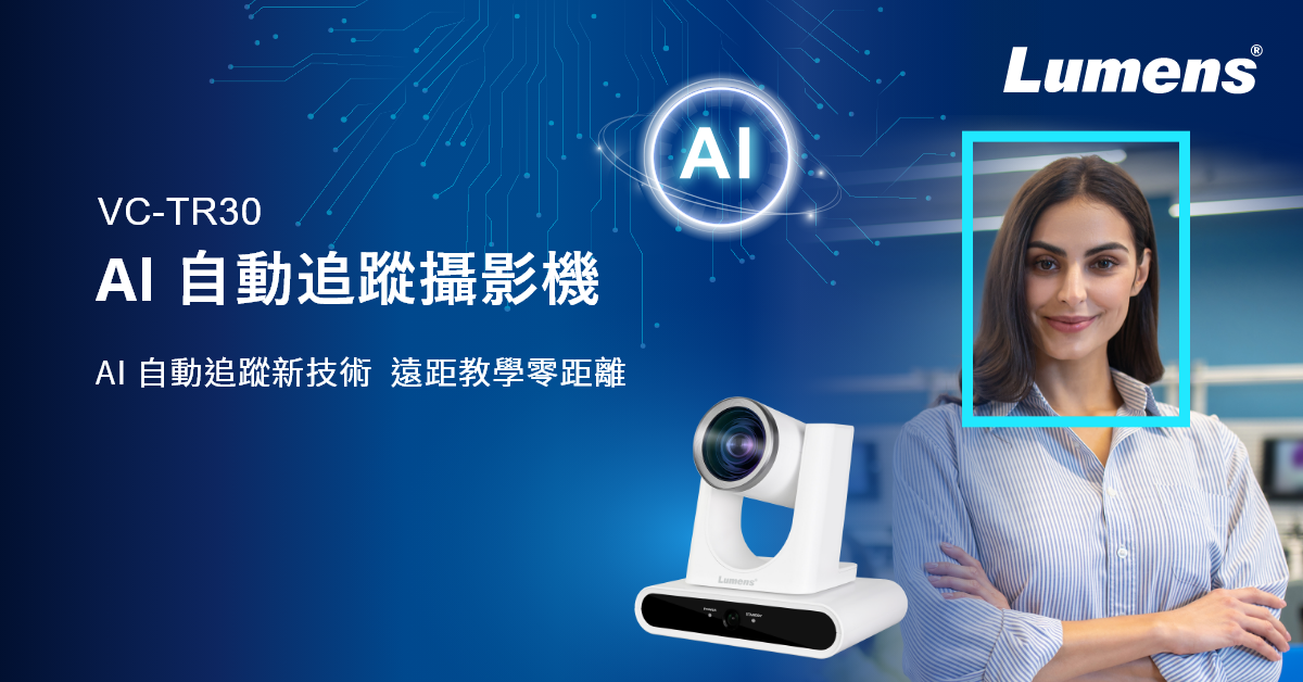 Lumens® 捷揚光電推出全新的 VC-TR30 AI 自動追蹤攝影機,是一款經濟實惠且具有出色高清影像輸出的自動追蹤 PTZ 攝影機。VC-TR30 攝影機外型簡約且易於安裝,其內建 AI 智能人像辨識系統使得攝影機可辨識人像,並追蹤目標人物移動於舞台、工作室或會議空間。